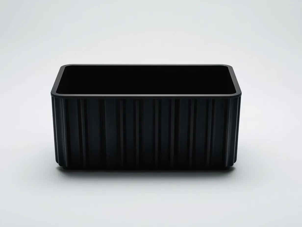 Macetero rectangular 62 x 28 x 28 cm - plástico negro - para exterior - diseño ondulado moderno decorativo
