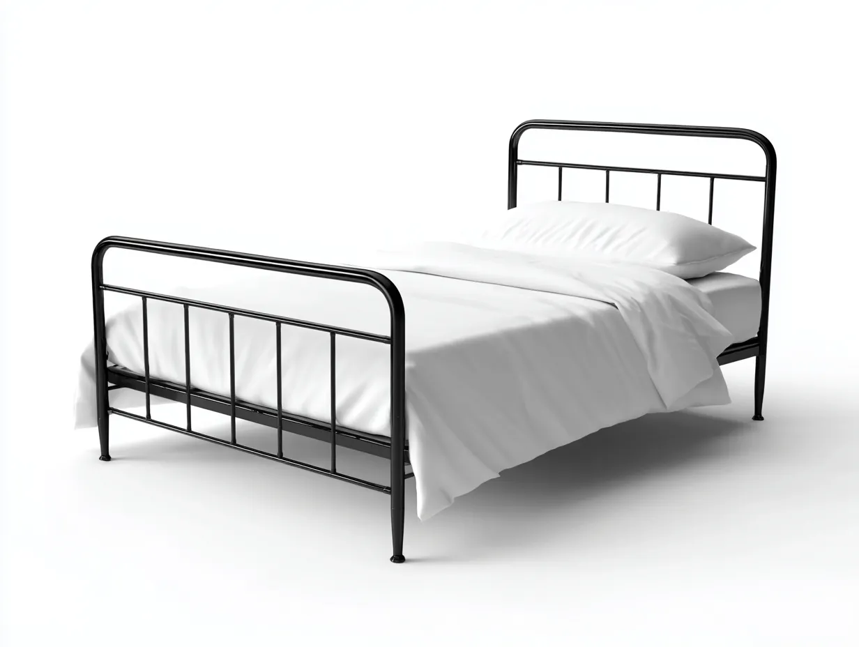 Cama individual de metal negro con cabecero y piecero rectos de barrotes 200 x 90 x 100 cm - para dormitorio - estilo minimalista e industrial