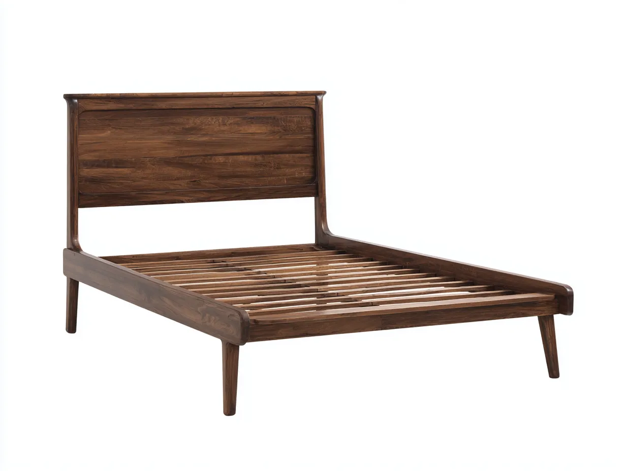 Cama individual de madera maciza nogal con cabecero recto y somier de láminas 200 x 105 x 112 cm - para dormitorio - estilo atemporal y natural